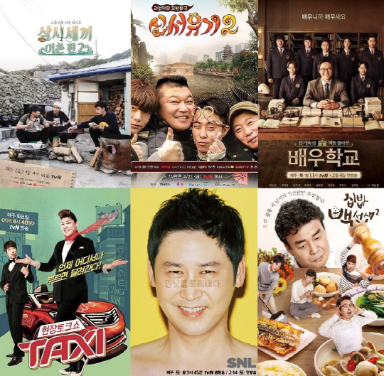 획기적인 새로운 예능도 눈길을 끌었다. 특히 '명품 배우' 박신양이 장수원, 유병재, 남태현 등 연기를 배우고 싶어하는 이들에게 기꺼이 연기를 전수해주는 과정을 담은 '배우학교'는 방송 첫날부터 종영하는 날까지 뜨거운 화제를 낳았다. '집밥 백선생2'와 '수요미식회'는 시들해진 쿡방 열풍 사이에서도 식지않은 인기를 보여주며 건재함을 과시했고 '코미디 빅리그'와 '현장토크쇼 택시' 'SNL코리아' 등 역시 변함없는 인기를 과시하며 tvN의 대표 장수 예능으로서 자존심을 지켰다.