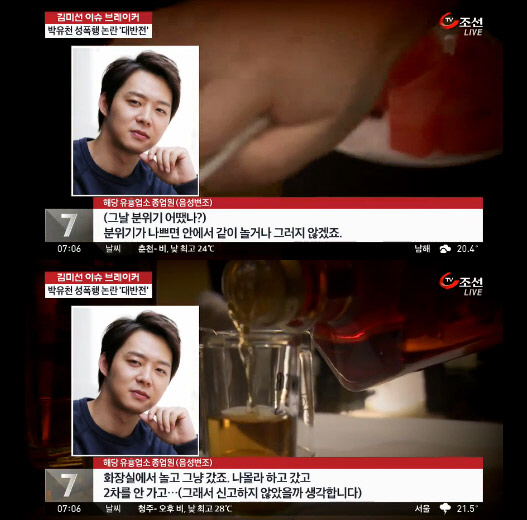 또 해당 유흥업소 종업원은 "이번 사건을 어떻게 보냐"는 질문에 대해 "성폭행은 아닌 것 같다"며 "성폭행은 소리만 질러도 저희가 화장실에 다 들어갈 수 있다. 직원들도 한두 명이 아니다"고 주장했다.