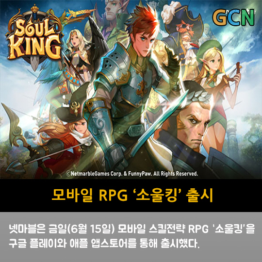 넷마블은 금일(6월 15일) 모바일 스킬전략 RPG '소울킹'을 구글 플레이와 애플 앱스토어를 통해 출시했다.