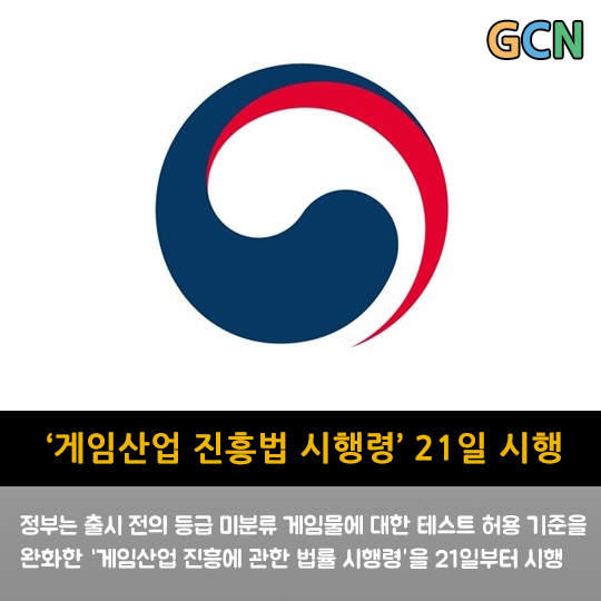 정부는 출시 전의 등급 미분류 게임물에 대한 테스트 허용 기준을 완화한 '게임산업 진흥에 관한 법률 시행령'을 21일부터 시행