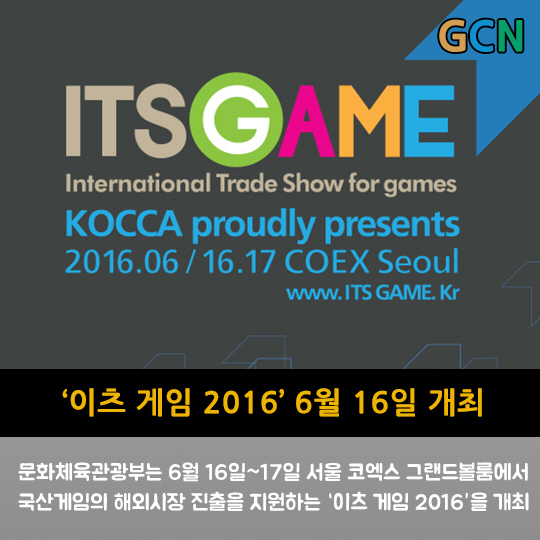 문화체육관광부는 6월 16일~17일 서울 코엑스 그랜드볼룸에서 국산게임의 해외시장 진출을 지원하는 '이츠 게임 2016'을 개최