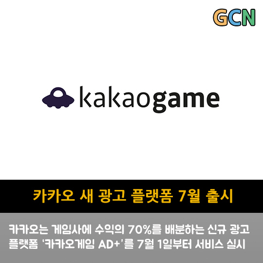 카카오는 게임사에 수익의 70%를 배분하는 신규 광고 플랫폼 '카카오게임 AD+'를 7월 1일부터 서비스 실시
