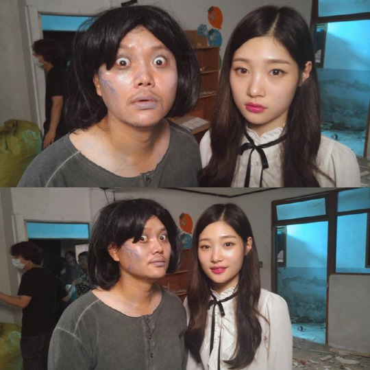 이날 공개된 사진에서 정채연은 귀신 역할의 김민교와 대비되는 모습으로 웃음을 자아낸다. 특유의 큰 눈과 분장으로 귀신느낌이 물씬 나는 김민교와 달리 정채연은 화사하고 상큼한 매력이 돋보이는 것. 이날 공포스러운 분위기에서도 빛을 발하는 정채연의 미모가 남심을 사로잡을 예정이다.
