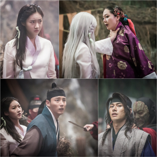 시청자들의 뜨거운 관심 속에 반환점을 돌고 이제 2막에 돌입한 JTBC 금토드라마 '마녀보감'(魔女寶鑑, 연출 조현탁 심나연, 극본 양혁문 노선재, 제작 아폴로픽쳐스·드라마하우스·미디어앤아트)측은 16일 청빙사에 침입한 염정아와 붉은 도포, 그리고 윤시윤, 김새론, 이이경의 긴박한 순간이 담긴 현장 스틸컷을 공개했다.