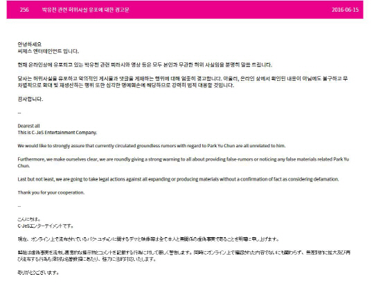 [스포츠조선 백지은 기자] JYJ 겸 배우 박유천 측이 악성 루머에 대한 입장을 밝혔다.