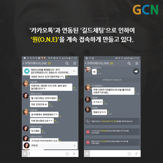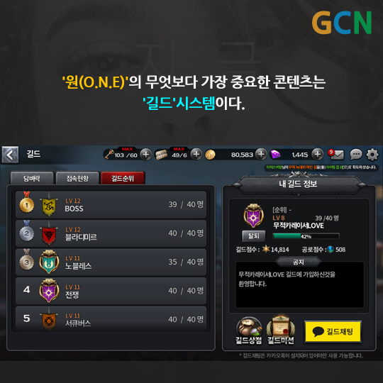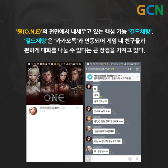 길드채팅을 하다보면 기존 모바일게임에서 볼 수 없었던 단합 등 다양한 재미를 느낄 수 있다. '원(O.N.E)'은 출시한지 얼마 되지 않아 만렙 콘텐츠