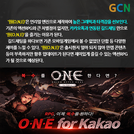 '원(O.N.E) for Kakao'은 언리얼 엔진으로 제작하여 높은 그래픽과 타격감을 선보인다.