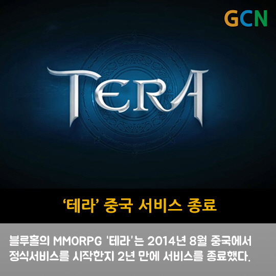 블루홀의 MMORPG '테라'는 2014년 8월 중국에서 정식서비스를 시작한지 2년 만에 서비스를 종료했다.