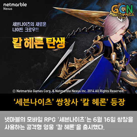 넷마블의 모바일 RPG '세븐나이츠'는 6월 16일 쌍창을 사용하는 공격형 영웅 '칼 헤론'을 출시했다.