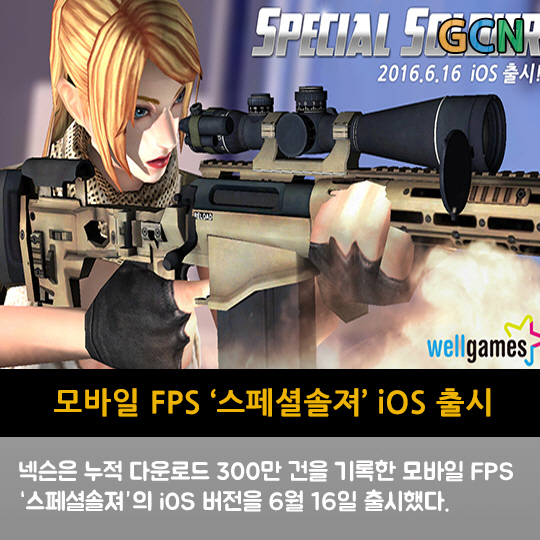 넥슨은 누적 다운로드 300만 건을 기록한 모바일 FPS '스페셜솔져'의 iOS 버전을 6월 16일 출시했다.