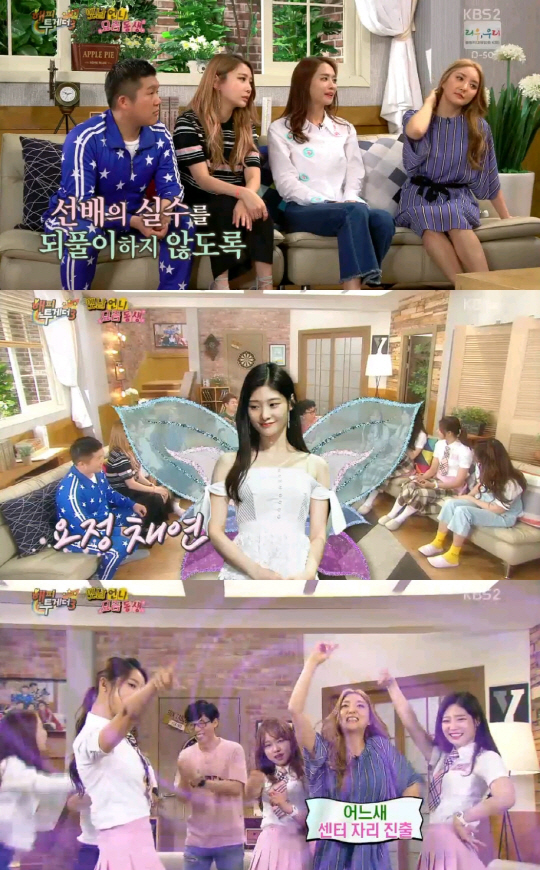 16일 방송된 KBS 2TV '해피투게더3'는 '옛날 언니 요즘 동생 특집'으로 꾸며져 '언니라인' 바다-박정아-제아와 '동생라인' I.O.I 최유정-정채연-임나영이 출연해 세대를 넘나드는 걸그룹 토크를 펼쳤다.