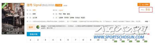 국내 방영 당시 '시그널'이 10%를 넘는 높은 시청률 뿐만 아니라 웰메이드 드라마로 '인생 드라마'라는 평가를 들었던 것처럼, 중국에서도 높은 조회수 뿐 아니라 높은 평점을 받았다는 점이 또 괄목할 만 하다. 텐센트 채널을 통해 방영되는 미드 중 '왕좌의 게임' 시즌1~시즌4가 9.7점, '하우스 오브 카드'의 평점이 9.5점, '굿와이프' 역시 총 6개 시즌 중 가장 높은 점수가 9.5점인 가운데, '시그널'의 평점은 9.6점을 기록했다. 세계적 인기를 자랑하는 웰메이드 미국 드라마들과 어깨를 견주는 수준인 것이다.