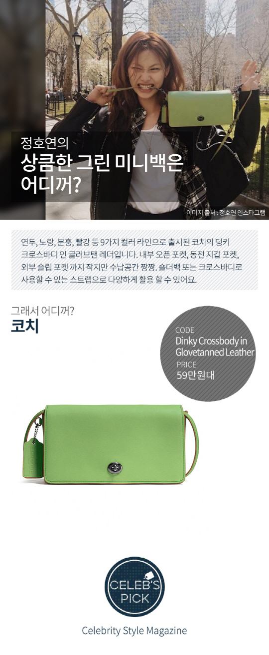 #어디꺼 #스포츠조선 #정호연 #미니백 #화창한날 #더욱즐겁게 #싱그러운그린 #귀요미템 #코치