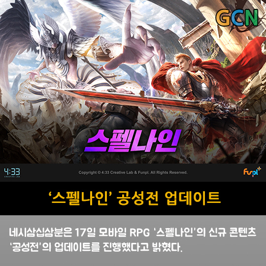 네시삼십삼분은 17일 모바일 RPG '스펠나인'의 신규 콘텐츠 '공성전'의 업데이트를 진행했다고 밝혔다.