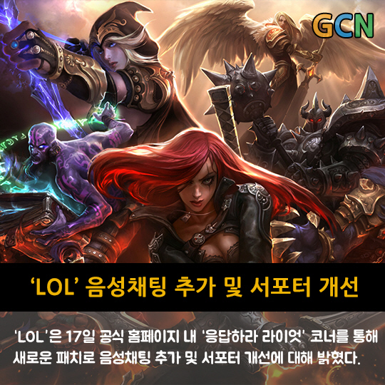 'LOL'은 17일 공식 홈페이지 내 '응답하라 라이엇' 코너를 통해 새로운 패치로 음성채팅 추가 및 서포터 개선에 대해 밝혔다.