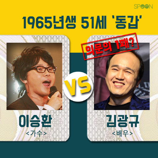 #. 지난 6월 12일 SBS '판타스틱듀오', '젝키 보컬' 강성훈과 '윤후 아빠' 윤민수가 1980년생 동갑내기라는 사실이 처음으로 알려졌다. 2월생인 윤민수가 "난 빠른~"이라며 빠져나가려 하자, 2월생인 강성훈도 질세라 "나도 빠른!"을 외쳤다. '동갑내기' 친구는 손을 맞잡았다. 세월을 거스르는 '절대동안' 스타 VS '의문의 1패' 스타, 연예 방송계에서 가장 판타스틱한 '동갑내기 반전 듀오'를 엄선했다.