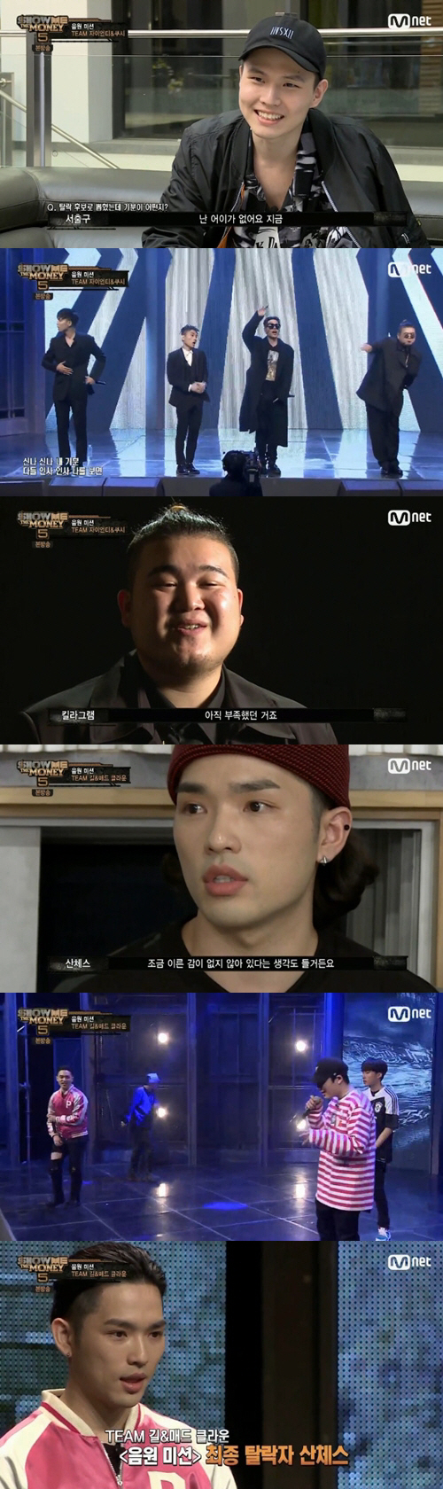 블랙 슈트를 입고 무대에 오른 네 명의 래퍼는 강렬한 카리스마를 뿜어냈고, 단 한 명도 실수 없는 무대를 선보여 프로듀서들로부터 극찬을 받았다. 자이언티&쿠시는 "오늘 무대를 보고 너무 반해서 어떻게 해야 할지 모르겠다"며 "아무리 생각해도 탈락자가 없는 거 같다"고 고민했다. 다른 래퍼와 프로듀서들은 서출구를 탈락자로 꼽았지만, 자이언티&쿠시는 킬라그램을 최종 탈락시켰다.