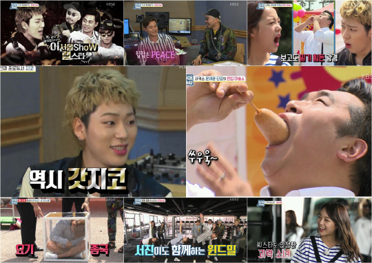 [스포츠조선닷컴 정유나 기자] '어서옵SHOW'의 재능 상품들이 갈수록 기발해지고 있다. 1회에 등장한 로봇, 축구에 이어 일일 가사 도우미, 이제는 서커스, 즉석 작곡 등 스타들의 상상초월 특기가 다양한 콘텐츠로 변신해 신선한 즐거움을 선사하고 있다.