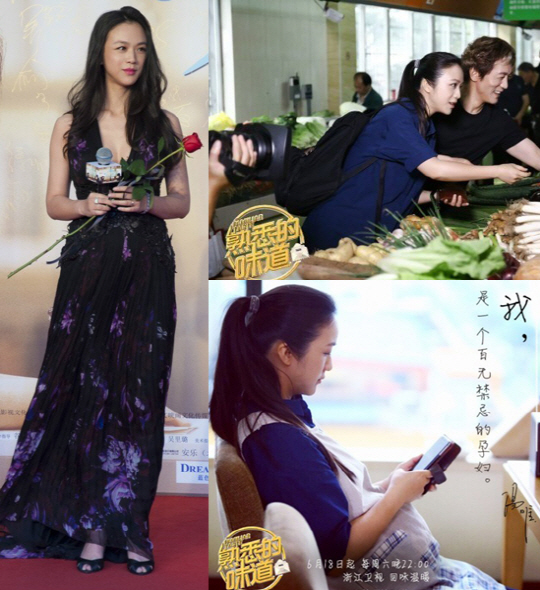 예비맘 탕웨이의 행보는 멈추지 않고 있다. 지난 달에는 만삭에 가까운 몸으로 중국 저장TV 예능 프로그램 '숙실적미도(熟悉的味道)' 촬영을 위해 고향인 항저우를 찾아 촬영했다. 이후 해당 프로그램 방영에 앞서 공개된 그녀의 일상 사진에는 "나는 거리낌 없는 임신부"라는 자필 글이 화제를 모으면서 모성애 가득한 따뜻한 여배우의 이미지까지 갖게 됐다.