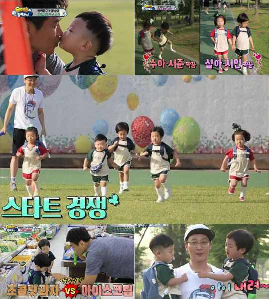 [스포츠조선닷컴 이지현 기자] '슈퍼맨'의 마스코트 장꾸둥이 '서언-서준'과 오둥이 '설아-수아-대박'이 뭉치니 케미와 함께 웃음꽃이 활짝 피었다.