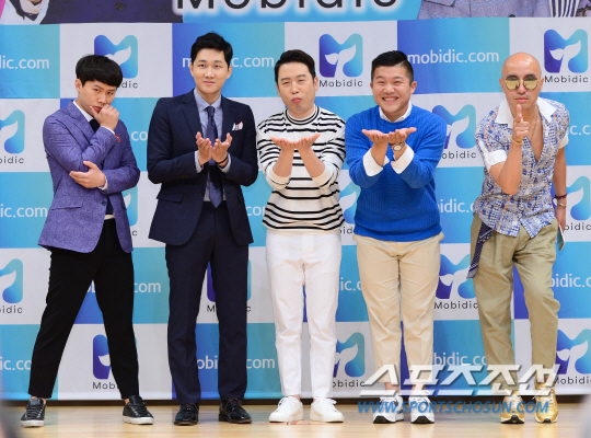 20일 서울 목동 SBS사옥에서 'Mobidic(모비딕) 제작발표회가 열렸다. SBS는 모바일 콘텐츠 브랜드 '모비딕'을 론칭하고 웹, 모바일 전용 콘텐츠를 제작한다. 제작발표회에 참석해 포즈를 취하고 있는 양세형, 이용진, 남창희, 조세호, 홍석천. 송정헌 기자 songs@sportschosun.com/2016.06.20
