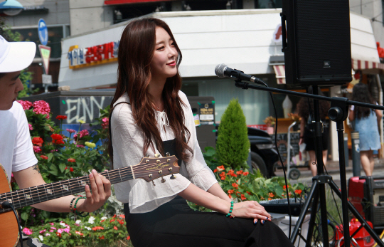[스포츠조선 고재완 기자] 솔로 도전에 나선 걸그룹 달샤벳 멤버 수빈이 깜짝 버스킹으로 시민들을 놀라게 했다.