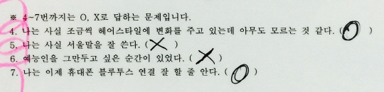 그리고 7번 '나는 이제 휴대폰 블루투스 연결 잘 할 줄 안다'는 문항에서는 슬쩍 입가에 미소를 띄우며 "하이고 참... 블루투스 이걸 못해? 당장 보여주고 싶은데"라고 자신만만하게 답했습니다. tvN '신서유기2' 촉박한 시간 때문에 당황해 연결하지 못했다는 해명입니다. 그는 "전원 키는걸 모르겠더라고요. 원래 이게 편안한 상태에선 할 수 있어도, 갑자기 하라고 하면 못 해"라고 변명해 기자들을 웃게 만들었습니다.