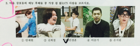 "날라차기 때문인가?(웃음) 다들 훌륭한 후배들이고 사람인데, (민)경훈이가 어떤 '날 것의 느낌'이 있어요. 많은 경험을 통한 예능 공식이 있거나 가공되지 않은 것 자체가 경훈이의 매력이죠. 또 사람 자체가 매력이 있고요. 물론 (은)지원이나 (이)승기나 (김)희철이도 거침없지만, 기본적으로는 예능에 능숙하고 굉장히 매너가 좋은 친구들이죠."