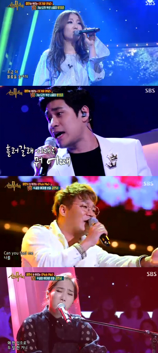 이후 '목소리 신'들의 인정 받은 그는 자신이 도전할 신의 목소리로 윤민수를 지목했다. 이어 그는 윤민수의 상상불가 노래로 걸그룹 아이오아이의 'Pick Me'(픽미)'를 선곡했다.