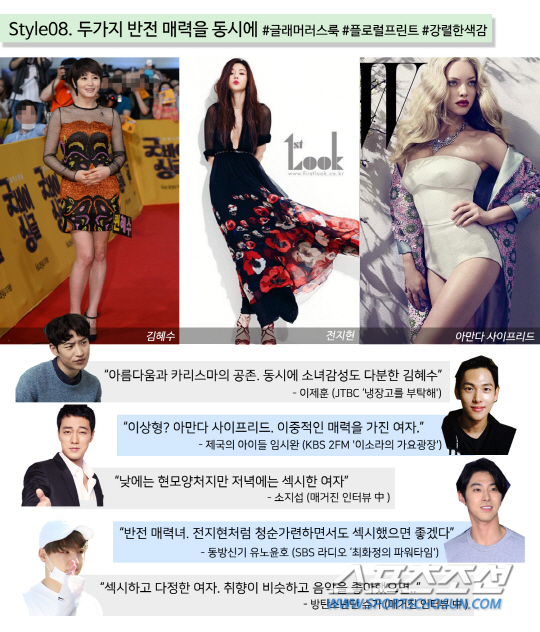 한 가지 매력만 고를 수 없다, 때에 따라 전혀 다른 매력을 보여주는 반전 매력을 가진 카멜레온 같은 여자를 이상형으로 꼽은 남자 스타들도 많았습니다.