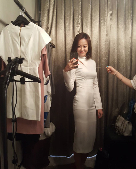 문지애는 지난 23일 자신의 인스타그램을 통해 "옷이 야하다. 꿰매자. 스탈리스트 뽀글이의 손 출연"이라는 글과 함께 사진 한 장을 올렸다.