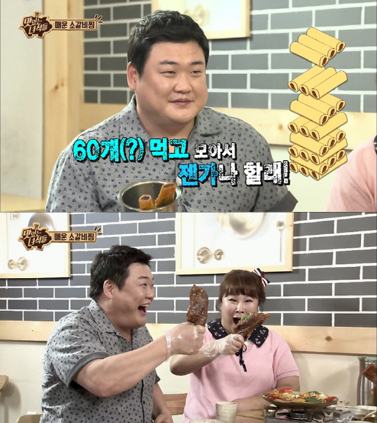 유민상은 커다란 뼈다귀를 손에 쥔 후 "어렸을 적 꿈꾸던 고기"라며 흥분을 감추지 못했고, 김준현도 "새로운 경험이다"는 감탄사와 함께 "갈비 60개 먹고 뼈 모아서 젠가하자"고 말해 웃음을 자아냈다
