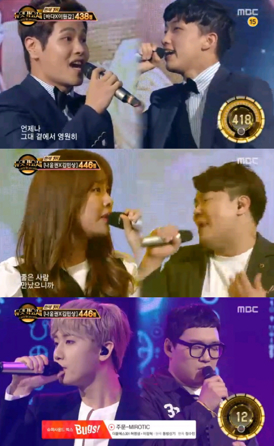 [스포츠조선닷컴 정유나 기자]'듀엣가요제' 허영생과 나윤권 팀을 꺾고 역전에 성공했다.