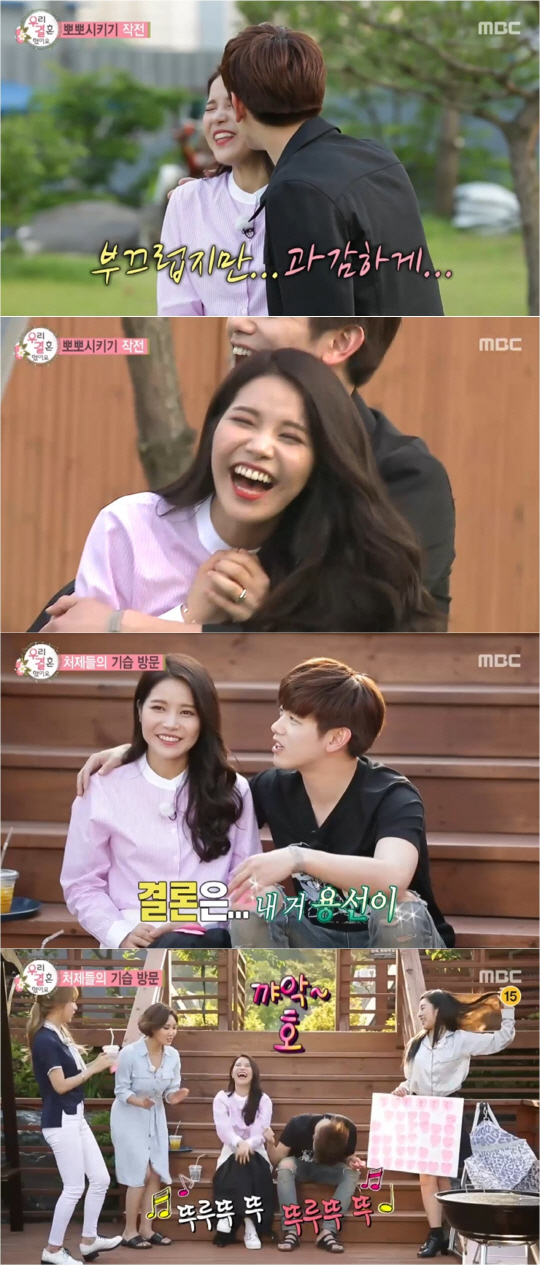 이날 하이라이트는 단연 '첫 뽀뽀' 순간이었다. 마마무 처제들은 '게임 시간'까지 준비해 '대놓고'스킨십 타임을 만들며 에릭남-솔라를 부끄부끄하게 만든 것.
