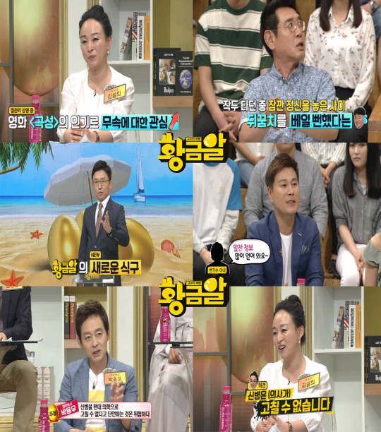 또 이번 방송부터 '황금알'의 새 패널로 합류하게 된 개그맨 변기수 역시 "과거 '개그콘서트'에서 '변수무당'이라는 캐릭터를 연기한 적이 있다"면서 "당시 무속인들의 영상을 보고 캐릭터를 연구하던 중 작두를 타는 장면을 접하게 됐고, 연기를 제대로 살리기 위해 PD 님께 '등장할 때 작두를 한 번 타보겠다'고 말했다. 그런데 PD님이 '온 가족이 다 보는 프로그램에서 작두를 타는 게 말이 되느냐'고 거부했고, 아쉬운 대로 타고 나온 것이 롤러스케이트였다"고 작두에 관한 자신의 일화를 전해 스튜디오를 초토화시켰다.