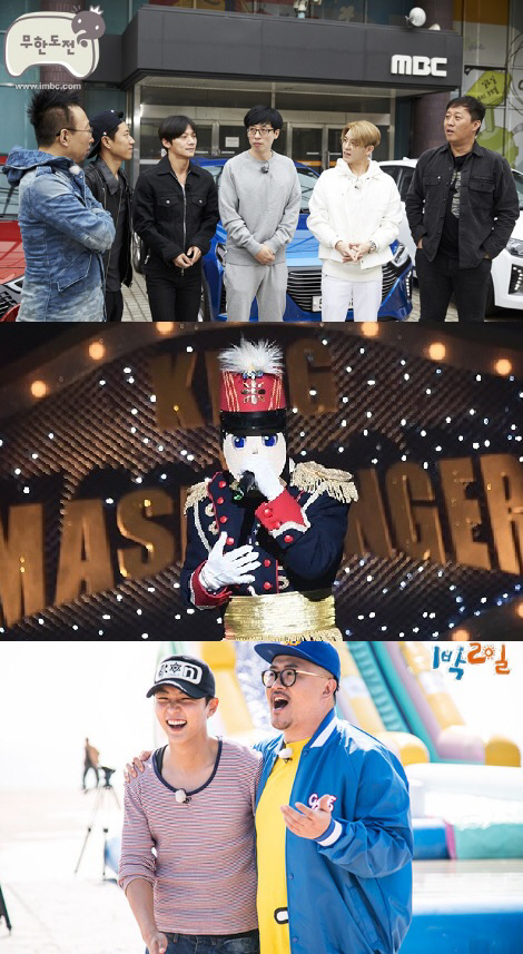 '복면가왕'도 여전히 최고의 음악 예능의 자리를 지켰다. 특히 동시간대 SBS에서 이선희, 엑소, 태양, 신승훈 등 톱스타들을 앞세운 음악 예능인 '판타스틱 듀오'를 새로이 출격 시켰으나 여전히 1위 자리를 놓치지 않았다. 오히려 9연승을 달성하며 신화를 쓰고 있는 '우리동네 음악대장'으로 인해 높은 화제성까지 꾸준히 유지하고 있다. KBS의 대표 예능인 '1박2일'은 새 멤버인 윤시윤의 영입으로 여전히 일요일 저녁 2부 예능 1위 자리를 유지하고 있다.