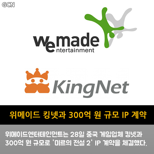 위메이드엔터테인먼트는 28일 중국 게임업체 킹넷과 300억 원 규모로 '미르의 전설2' IP 계약을 체결했다.