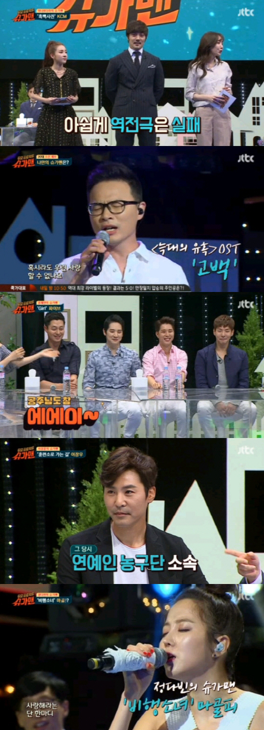 먼저 유희열팀의 소진은 자신의 '슈가맨'으로 2004년에 발표한 영화 '늑대의 유혹' OST인 '고백'을 부른 가수 이수훈을 제보했다. 당초 소진은 21불을 예상했지만 총불로 36불이 들어왔다. 과거 얼굴 없는 가수로 활동했던 이수훈은 "일부러 모습을 감추려고 그랬던건 아니었다. 강동원씨가 실제로 영화에서 마지막 소절을 불렀었는데, 제가 노래를 방송에서 부르면 환상이 깨질까봐 자의반 타의반으로 방송 출연을 하지 않았다"고 사연을 전했다. 또한 이날 이수훈은 지난 2002년 드라마 '순수의 시대' OST '후애'도 열창, 남성 관객들의 뜨거운 호흥을 받았다. 그는 "군대게 갔다가 성대를 다치는 바람에 수술을 했다. 이제 완쾌가 됐다. 다시 활동을 하려고 한다"고 전해 응원의 박수를 받았다.