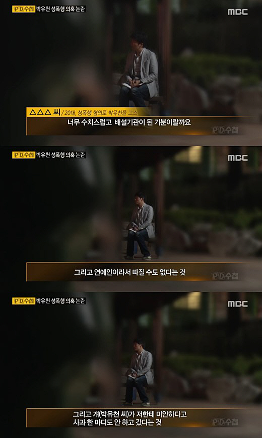 이어 A씨는 사건 당시 상황을 제작진에 설명했다. A씨는 "거기서 음악을 틀면 그 가게 전체가 울려 퍼진다. 걔(박유천)가 노래를 부르고 클럽 음악을 엄청나게 세게 튼다. 분위기 잘 맞출 줄 모르고, 일한 지도 얼마 안 돼서 '어떻게 하지' 이러고 있는데, 걔가 제 허리를 딱 감싸면서 담배 피우면서 춤을 추기 시작한 것"이라며 "(당시 박유천이)저한테 계속 '돈이 얼마가 필요하냐, 왜 나왔냐' 그런 얘기를 했다. 그러면서 '야, 자 안 들린다. 화장실 가서 얘기하자' 이랬다. 아무런 의심도 없이 그냥 따라 들어갔다"고 전했다.