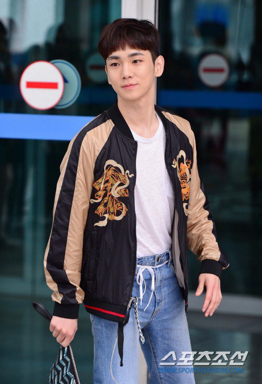 공항패션보단 더욱 강렬한 느낌의 스카잔 점퍼를 착용한 키의 모습이다. 짙은 레드 컬러의 윈도우 페인 체크 셔츠에 동양적인 무드가 물씬 풍기는 자수의 점퍼를 믹스매치했다. 블루&레드의 컬러 매치가 단연 인상적인 룩이다. 키는 여기에 올풀림과 디스트로이드 디테일이 들어간 하이웨스트 데님 진과 스키니진을 매치했다. 특별한 포인트는 벨트 대신 화이트컬러 끈으로 조여맨 허리 디테일이다. 펑키하면서도 자유분방한 매력이 가득 느껴진다.