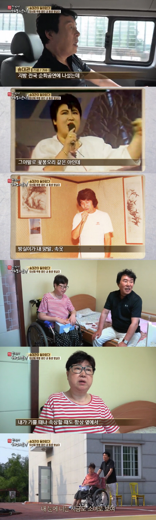 방실이는 자신을 찾아온 송대관에게 "제일 많이 와줬다. 힘든 시기에도 병원에 찾아왔다. 송대관이 돌아갈 때마다 '내가 좀 건강했더라면' 이런 생각을 한다"고 고마워했다.