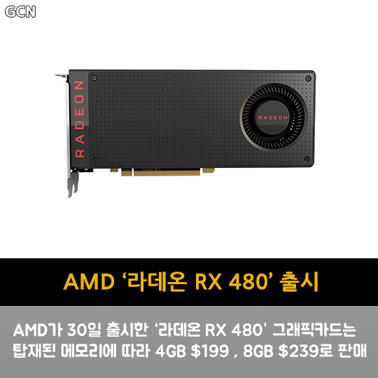 AMD가 30일 출시한 '라데온 RX 480' 그래픽카드는 탑재된 메모리에 따라 4GB $199 , 8GB $239로 판매