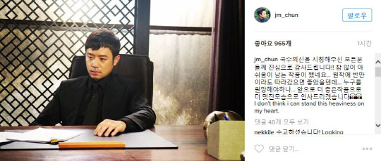 [스포츠조선 백지은 기자] 배우 천정명은 왜 의미심장한 글을 남겼을까.