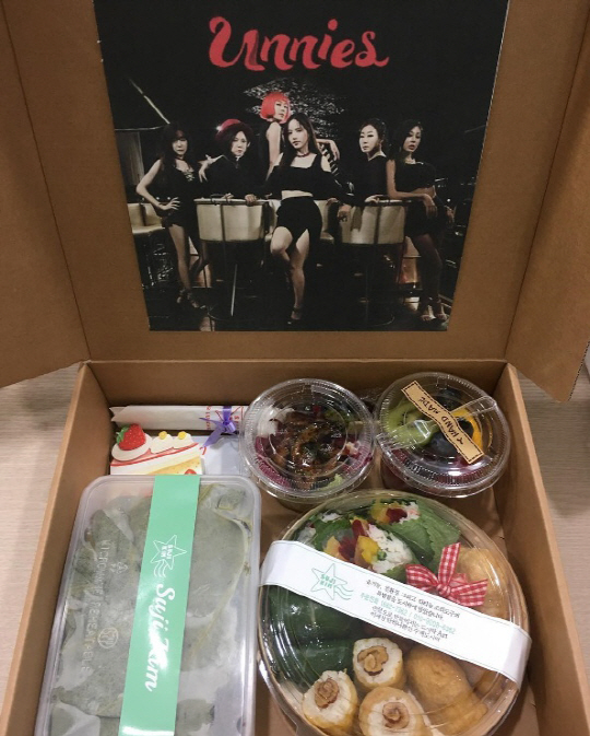 홍진경은 1일 자신의 인스타그램에 "은이 언니 고마워요! 은이 언니 잘 먹겠습니다! 뮤뱅 대기실로 배달온 은이 언니의 도시락 선물~ 송은이 짱!"이라는 글과 함께 도시락 사진을 게재했다.