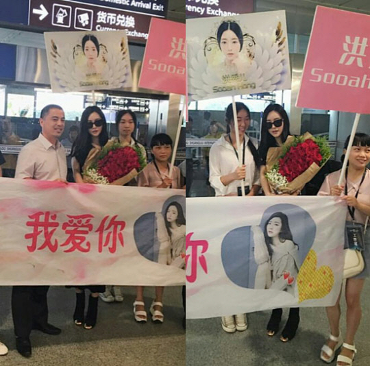 지난달 30일 광고 스케줄 차 출국한 홍수아가 자신의 중국 입국을 환영하기 위해 모인 중국 팬들의 뜨거운 환대를 받으며 청두에 도착했다.