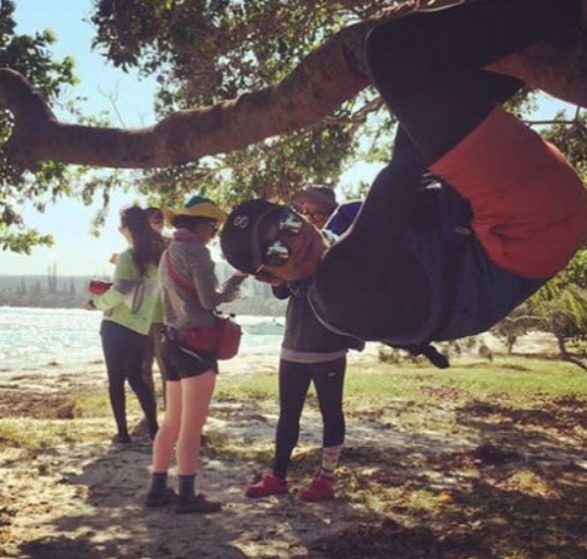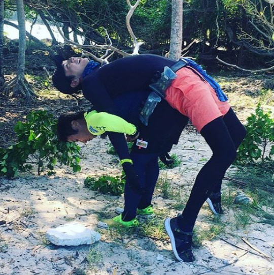 또한 "고생하기 10분전 작은배 타기전에 찍은거"라는 글에는 나무에 원숭이처러 매달린 김영광의 모습이 담겨 있으며, "너무 착한 은우와 신나서 찍은한컷"이라는 글에는 아스트로 차은우와 김영광의 해맑은 미소가 눈길을 끈다.