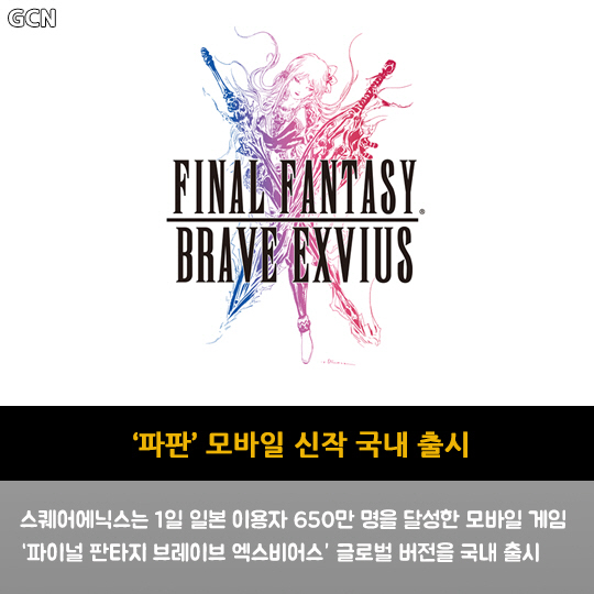 스퀘어에닉스는 1일 일본 이용자 650만 명을 달성한 모바일 게임 '파이널 판타지 브레이브 엑스비어스' 글로벌 버전을 국내 출시
