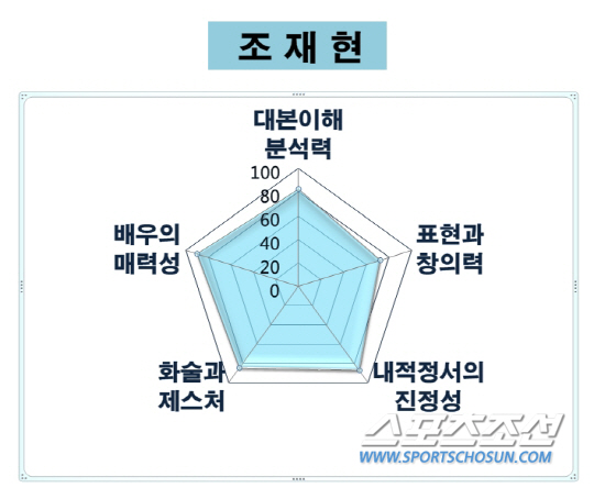조재현의 연기력은 대본 이해 분석력, 표현과 창의력, 내적정서의 진정성, 화술과 제스처, 배우의 매력성 등 총 5가지 부문으로 평가됐다. 5가지 부문 중 가장 높은 점수를 얻은 부문은 배우의 매력성 부문이다. 만점에 가까운 90점이 나왔다. 모든 자문단들이 90점, 80점, 100점, 90점의 높은 점수를 준 결과다. 서희 국민대 미디어예술학부 외래교수는 조재현의 연기를 그의 드라마 '국수의 신' 속 주요 소재이기도 한 국수에 비유하며 그의 매력을 평가했다. 서희 교수는 "등장 만으로도 공포감이 느껴지는 목구멍을 타게 만드는 펄펄 끓는 국물 같은 악역이 있는가하면 보면 볼수록 화가 나고 안달나게 하는 얇고 길게 뽑아내는 국수 같은 악역도 있다. 이 둘이 합쳐져 얼큰한 국수가 되는데 조재현이 바로 국수 장인의 솜씨를 훔친 진정한 국수 연기를 보여주고 있다"며 "조재현 만이 가질 수 있는 카리스마와 능청스러움이 함께 어우러져 드라마 속 긴장감을 이어나가고 있다"는 찬사를 보냈다.