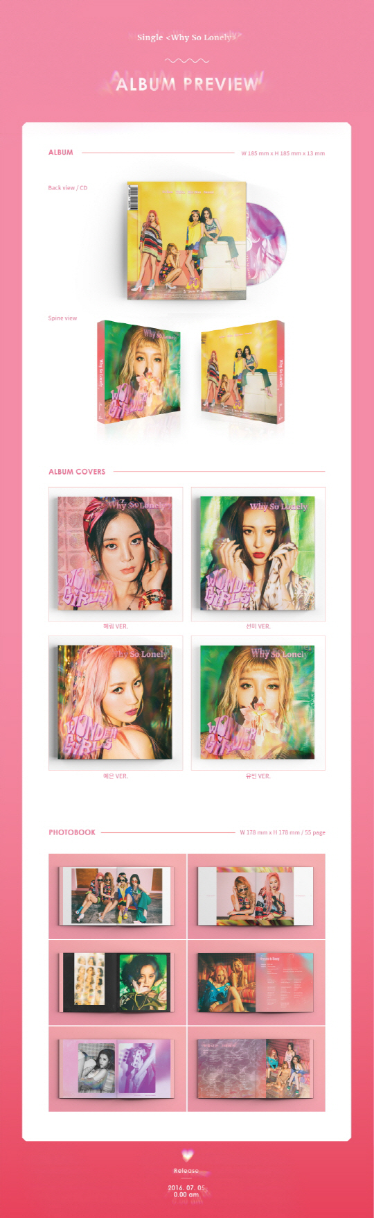 오는 5일 발매를 앞둔 원더걸스의 새 싱글 'Why so lonely'는 동명 타이틀곡 'Why so lonely'를 비롯해 '아름다운 그대에게' 'Sweet&Easy(스윗 앤 이지)' 등 총 3곡이 수록됐다.