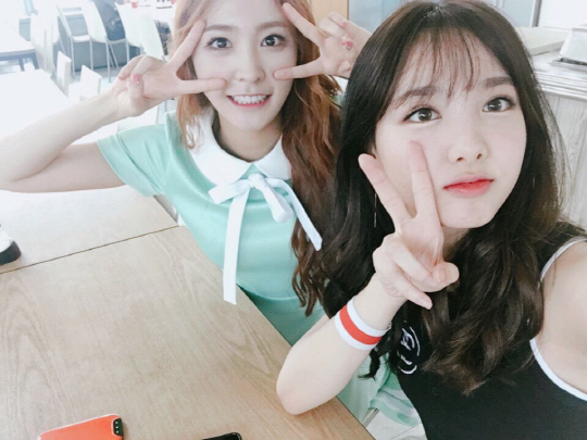 지난 3일 나현은 자신의 트위터에 "오랜만에 만난 나봉이와, 치얼업 넘나좋은것"이라는 글과 함께 트와이스 나연과 함께 찍은 사진을 게재했다. 사진에는 화사한 민트색 원피스를 입고 있는 소나무 나현과 블랙 슬리브리스로 멋을 낸 트와이스 나연이 귀여운 브이 포즈를 취하고 있다.